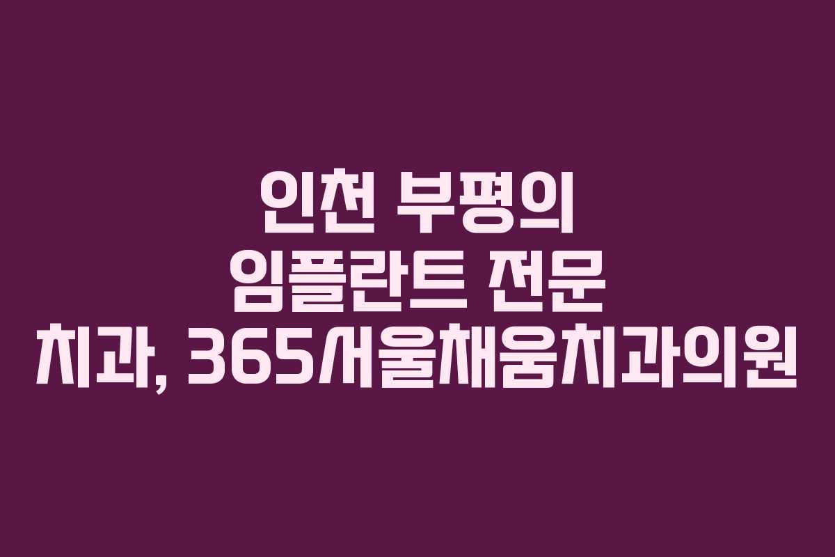 치아 건강은 삶의 질에 많은 영향을 미칩니다. 인천 부평 지역에서 신뢰할 수 있는 치과인 365서울채움치과의원은 전문성과 편의성, 환자 중심의 진료 철학을 바탕으로 많은 사람들에게 사랑받고 있습니다. 이 글에서는 이 치과의 특징과 강점을 살펴보겠습니다.