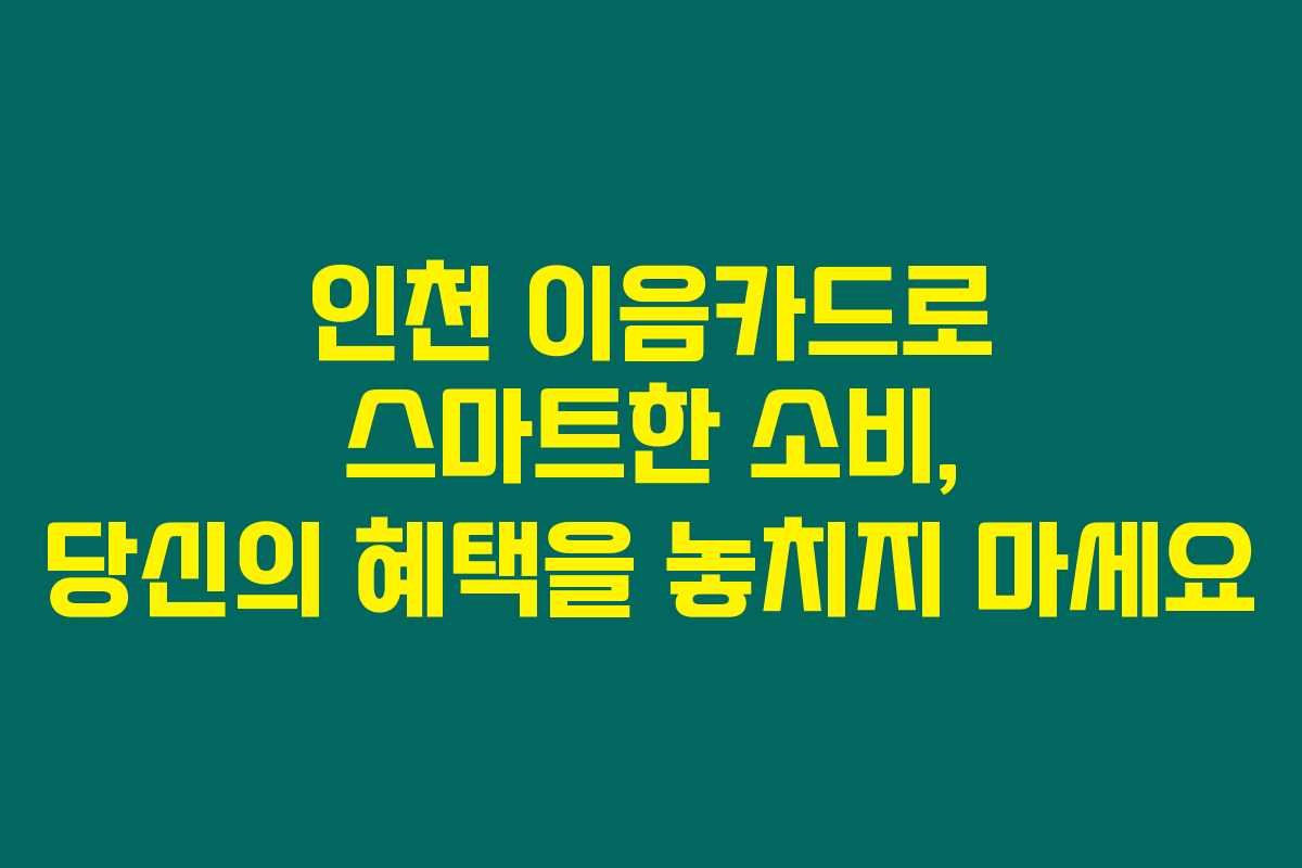 인천 이음카드를 활용하면 지역 경제를 지원하면서 동시에 나의 소비 부담이 줄어들게 되는 즐거운 경험을 할 수 있답니다. 자신이 선호하는 가맹점에서의 혜택을 꼼꼼히 체크하고 활용해 보세요.