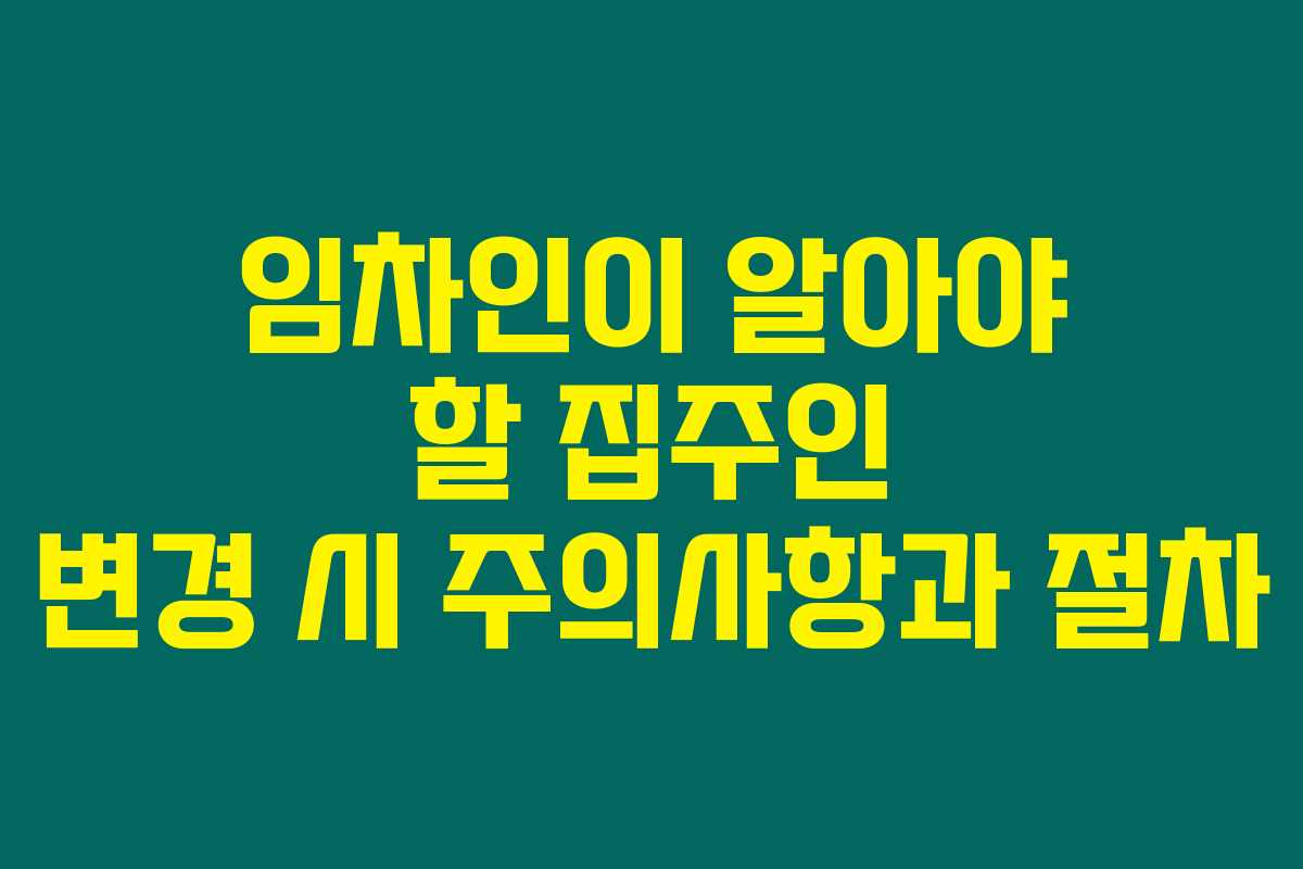 임대차계약 기간 중 집주인이 변경되는 것은 비교적 흔한 일인데요, 임차인으로서 알아야 할 다양한 권리와 절차가 있다는 점 꼭 기억해 주세요. 주택임대차보호법이 보장해주는 임차인의 권리를 통해 보다 안정적인 주거 환경을 만들어가세요!