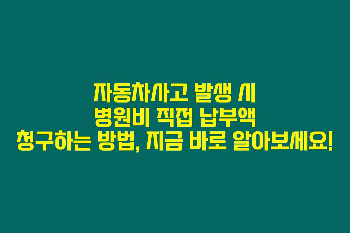 자동차사고 시 본인이 직접 납부한 병원비는 어떻게 청구해야 할까요? 이 방법을 모르면 불이익을 당할 수 있어요. 아래를 읽어보시면 자동차사고 병원비 청구 방법에 대한 자세한 정보를 확인해 보실 수 있습니다.