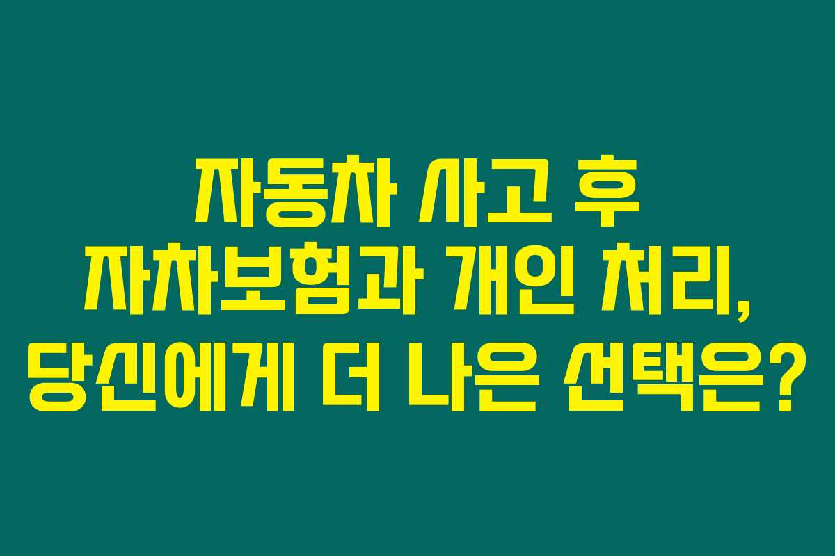 자동차 사고 후 자차보험과 개인 처리 방법에 대해 자세히 알아보시고 나에게 맞는 선택을 확인해 보세요. 알찬 정보를 통해 현명한 결정을 내리는 데 도움이 될 거예요!