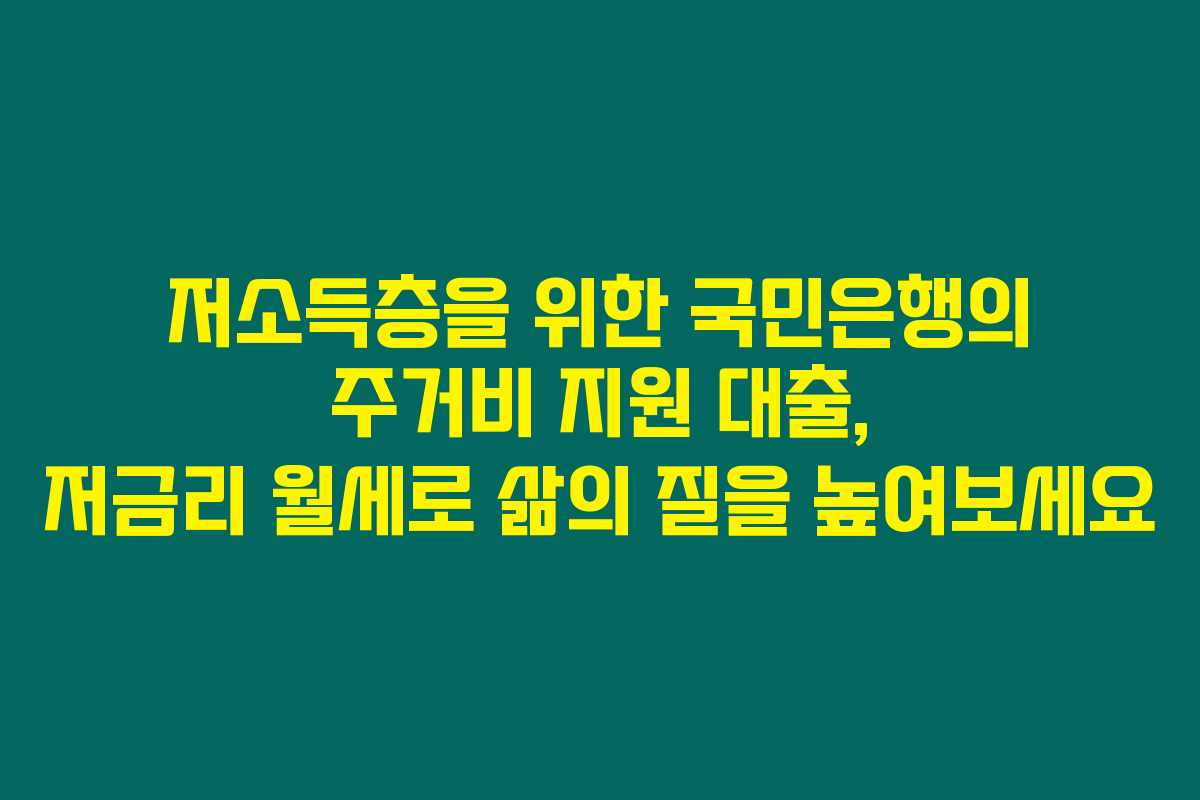 저소득층을 위한 국민은행의 주거비 지원 대출, 저금리 월세로 삶의 질을 높여보세요