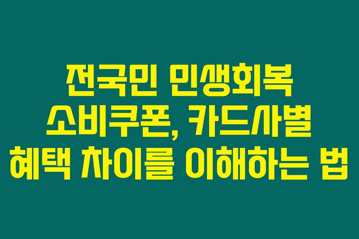 제가 리서치한 바로는, 전국민 민생회복 소비쿠폰은 카드사를 통해 지급되면서 카드사별로 다양한 추가 혜택과 차별점이 존재합니다. 따라서, 이 글에서는 카드사별 혜택의 차이에 대해 깊이 있게 분석해 보려 합니다. 아래를 읽어보시면 어떤 카드가 본인에게 가장 유리한지 쉽게 판단할 수 있을 것입니다.