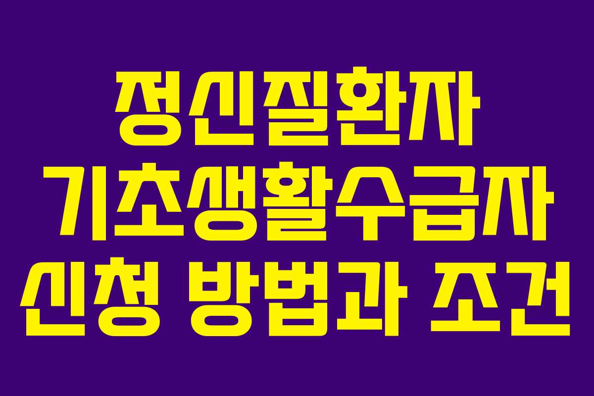 정신질환으로 인해 일상생활에 어려움을 겪고 있는 분들에게 기초생활수급자는 중요한 지원 제도입니다. 이 글에서는 신청 방법과 조건, 제공되는 혜택에 대해 자세히 설명하겠습니다.