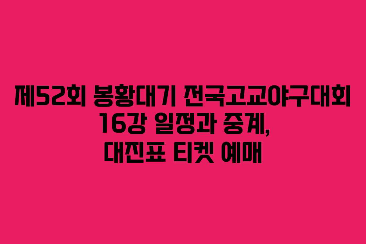• 본 포스트의 핵심 키워드: 봉황대기 전국고교야구대회, 16강, 중계방송, 대진표, 티켓 예매를 중심으로 구성했습니다