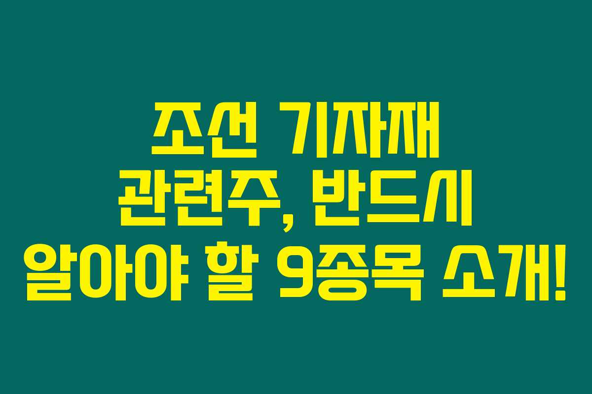 조선 기자재 관련주에 관심이 많으신가요? 조선 산업의 회복세에 힘입어 이들 기업들의 주가와 수익성도 주목받고 있습니다. 조선 기자재 관련 투자를 고민 중이라면 꼭 확인해야 할 9종목에 대해 알아보겠습니다. 아래를 읽어보시면 이들 기업들의 특징과 최신 동향에 대한 정보를 알 수 있습니다.