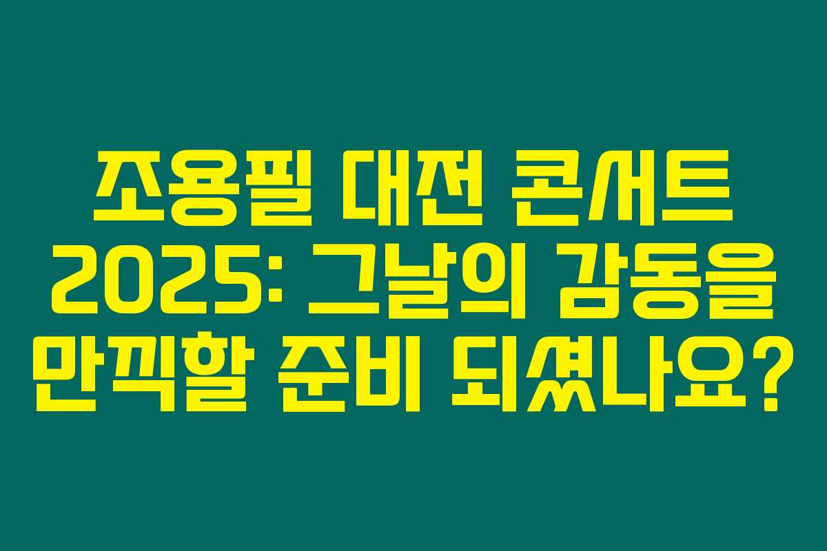 조용필 대전 콘서트에 대한 모든 정보를 전달해 드렸어요! 이 특별한 공연을 통해 진정한 감동을 느껴보세요. 빠른 예매를 통해 놓치는 일 없도록 미리 준비하세요.