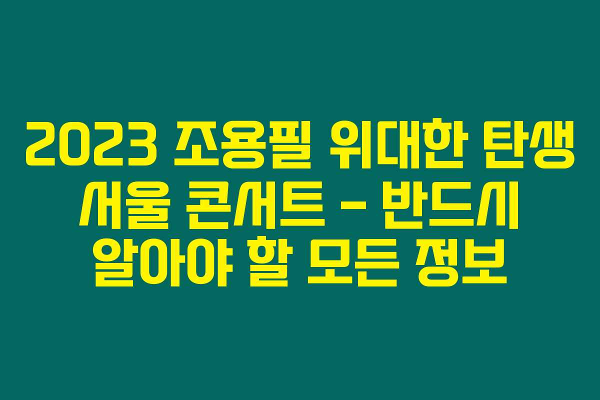 조용필 위대한 탄생 콘서트는 분명 잊지 못할 경험이 될 거예요. 기억에 남을 하루를 위해 미리미리 준비해두고 기대하는 마음으로 공연을 기다려 보세요. 여러분도 꼭 함께 하길 바래요!