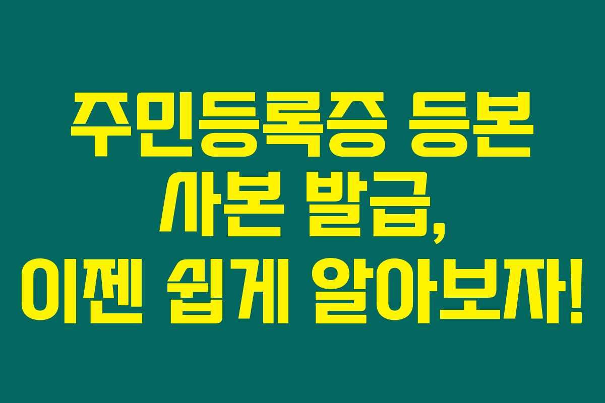 주민등록증 등본은 개인의 신身份을 증명하는 데 필요한 중요한 서류입니다. 주민등록증 등본 사본을 발급받고 싶지만 절차가 복잡할까 걱정이라면, 아래를 읽어보시면 간편하게 발급 방법을 이해할 수 있을 거에요. 발급 방법은 온라인과 오프라인 두 가지로, 상황에 맞게 선택하면 된답니다.