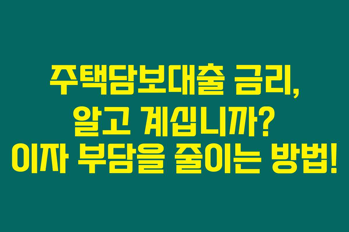 주택담보대출 금리가 높아지면 전체 상환 비용이 증가하므로, 월 상환액을 계산할 때는 항상 신경 써야 해요.