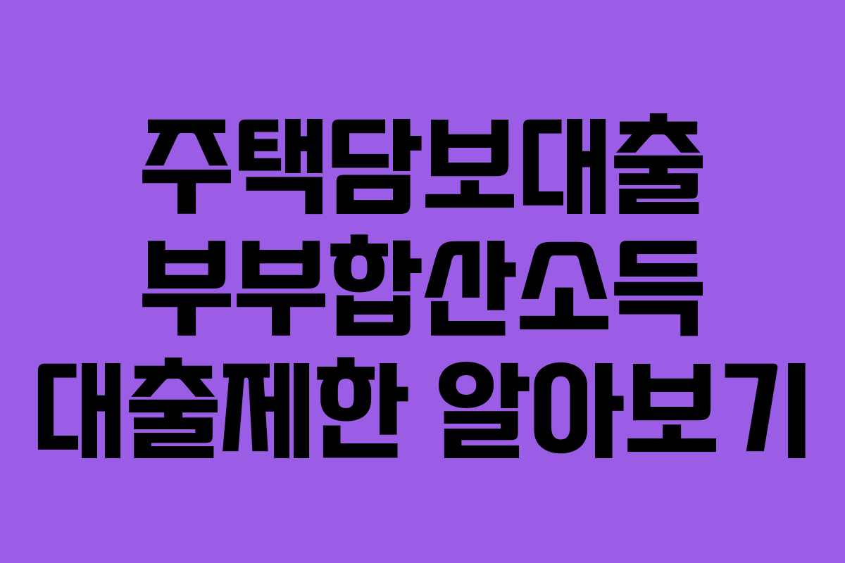 부부합산소득은 부부 두 사람의 총 소득을 합산하여 계산한 금액으로, 주택담보대출의 대출 한도 및 조건에 중요한 영향을 미칩니다.