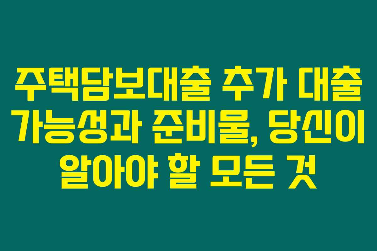 주택담보대출 추가 대출 가능성과 준비물, 당신이 알아야 할 모든 것
