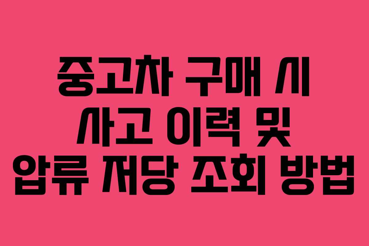 중고차 구매는 신중한 결정이 필요합니다. 특히 사고 이력과 압류 저당 여부를 확인하는 것은 매우 중요합니다. 본 글에서는 중고차 사고 이력 조회와 압류 저당 조회 방법에 대해 자세히 설명하겠습니다.