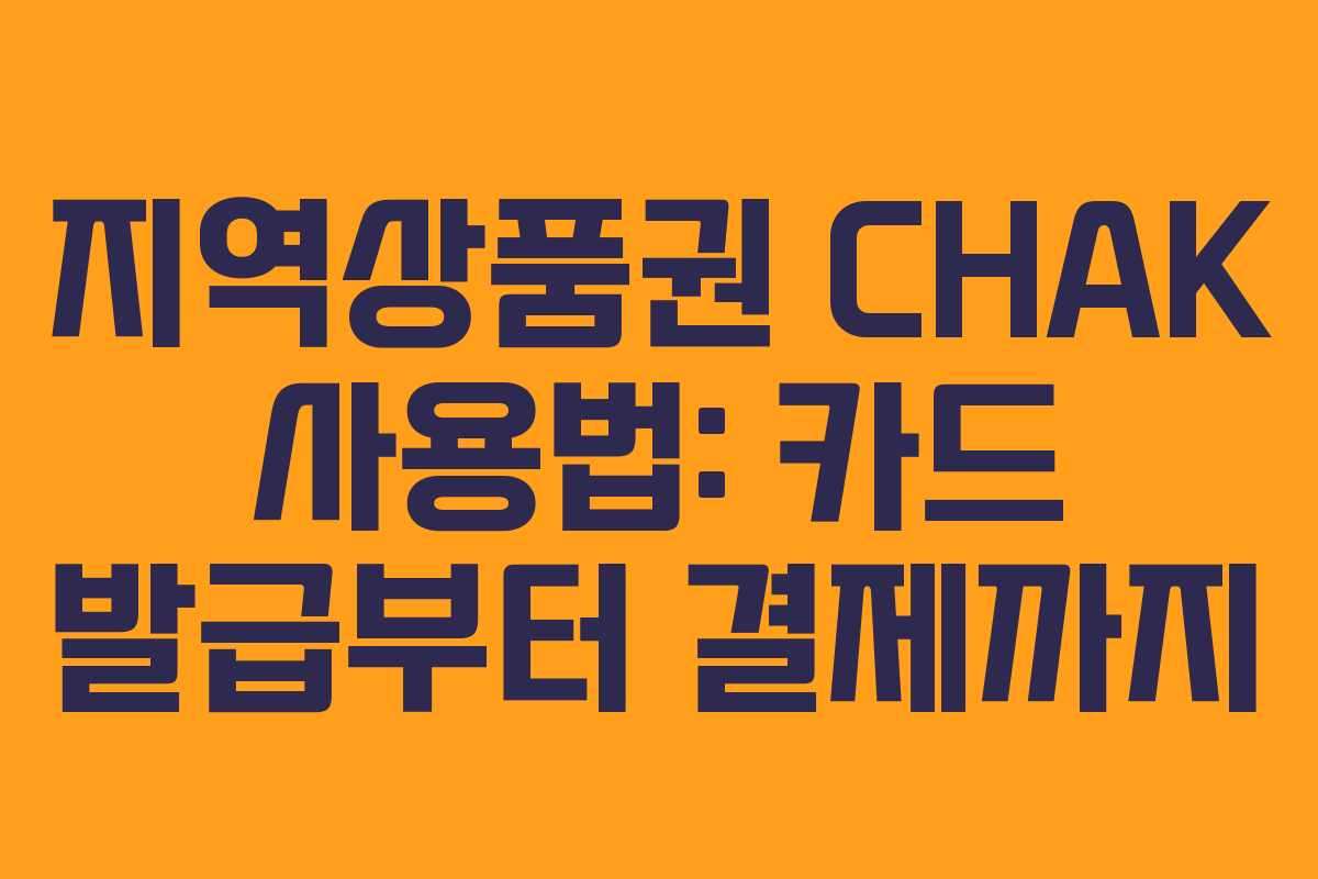 지역상품권 CHAK은 지역 경제 활성화를 위한 유용한 수단으로, 다양한 할인 혜택을 제공받을 수 있습니다. 이 글에서는 CHAK을 사용하는 방법을 카드 발급부터 결제, 취소까지 자세히 설명하겠습니다.