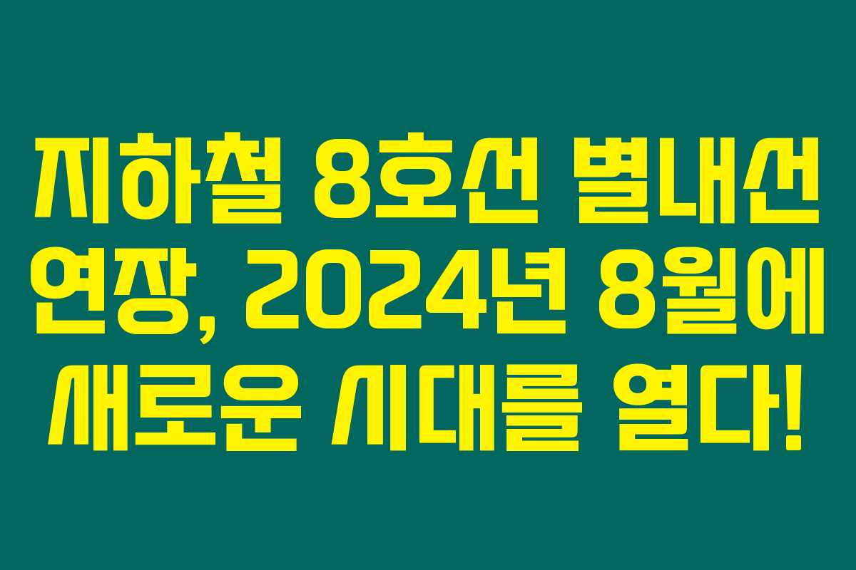 제가 리서치해본 결과로는, 지하철 8호선 별내선 연장이 드디어 시운전 단계에 접어들며, 2024년 8월 중 개통 전망을 맞이하고 있어요. 이렇게 새로운 노선이 개통되면 수도권 동북부 지역 주민들의 교통 편의성이 더욱 향상될 것으로 기대됩니다. 아래를 읽어보시면, 이 연장선이 가져올 변화와 기대효과에 대해 상세히 알아보실 수 있어요.