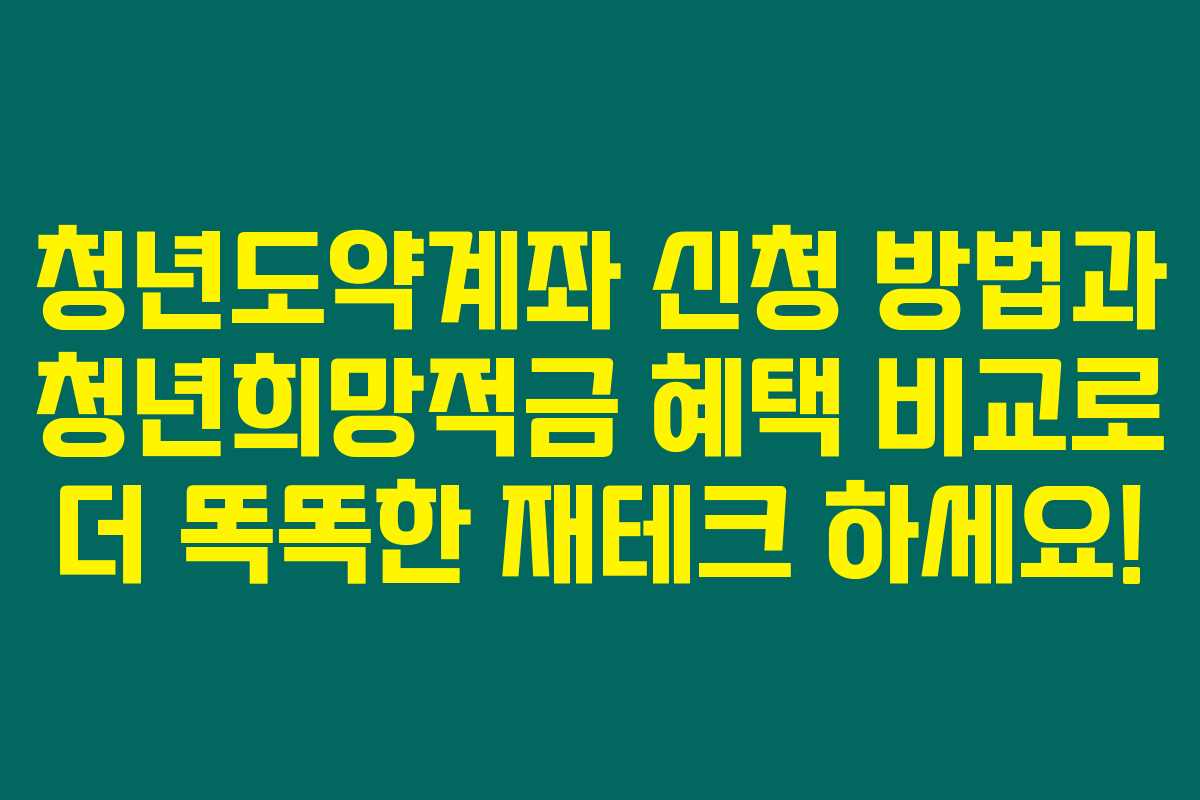 청년도약계좌를 신청하려는 분들 주목해 주세요! 청년희망적금이 어떤 혜택을 제공하고 있는지 비교하며 알기 쉽게 설명드릴게요. 청년도약계좌는 새로운 금융 상품으로 경제적 독립을 위한 간편한 방법인데요. 아래를 읽어보시면 청년도약계좌 신청 방법과 비교하여 청년희망적금이 어떻게 다른지 알아보실 수 있습니다.