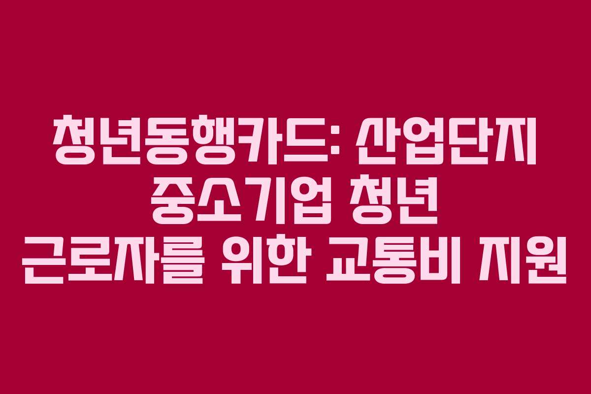 청년동행카드는 산업단지에 위치한 중소기업에 근무하는 청년 근로자에게 교통비를 지원하는 사업입니다. 이 프로그램은 교통 여건이 열악한 지역에서 근무하는 청년들에게 매월 5만 원의 교통비를 제공하여 경제적 부담을 덜어주는 데 목적이 있습니다.