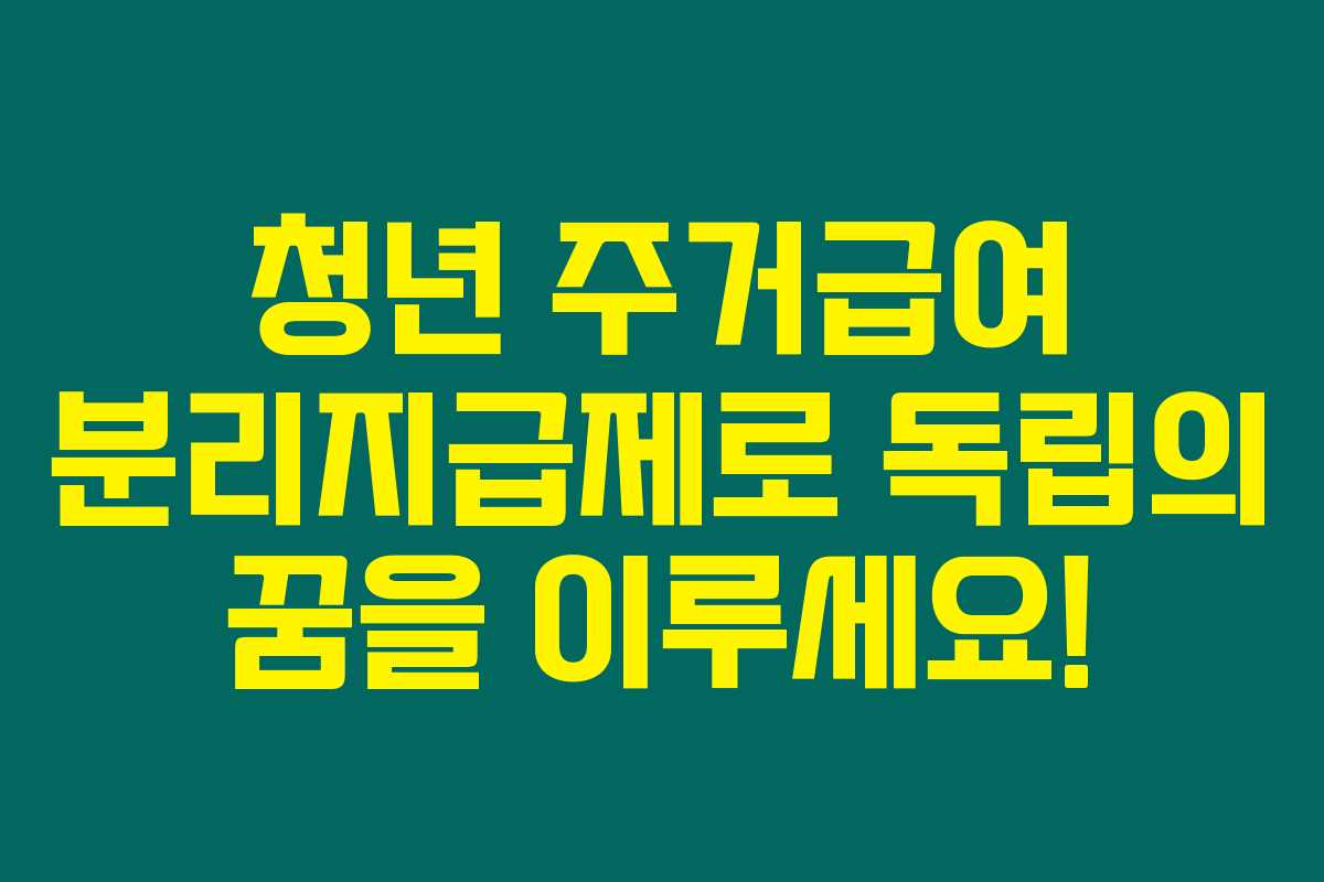 분리지급제를 활용하면 청년들이 보다 쉽게 독립할 수 있도록 도움을 받을 수 있답니다. 신청해보시고, 주거비 부담을 덜어보세요!