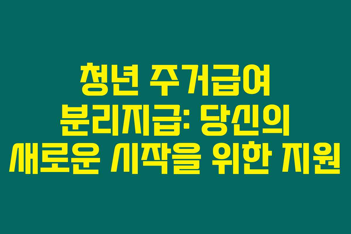 디스크립션: 청년 주거급여 분리지급 신청에 대해 상세히 안내드릴게요. 제가 직접 체크해본 바로는, 이제 청년들이 부모와 별도로 거주하더라도 주거급여를 받을 수 있게 되었습니다. 이러한 새로운 제도가 어떤 의미가 있는지, 신청 자격과 방법에 대해 알아보겠습니다.