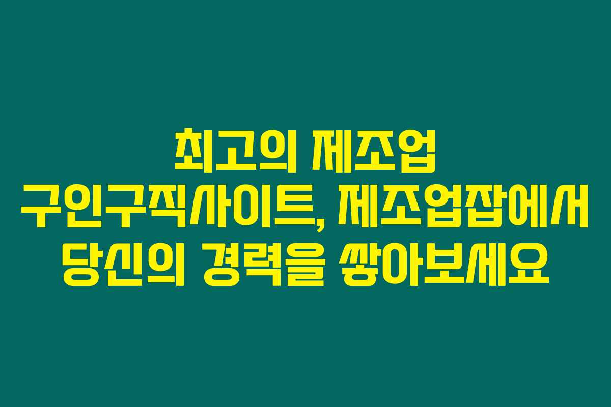 제조업 분야에서 좋은 일자리를 찾는다면, 아래를 읽어보시면 제조업잡이 어떤 플랫폼인지, 그리고 어떻게 당신의 경력을 발전시킬 수 있는지 알게 될 거예요.