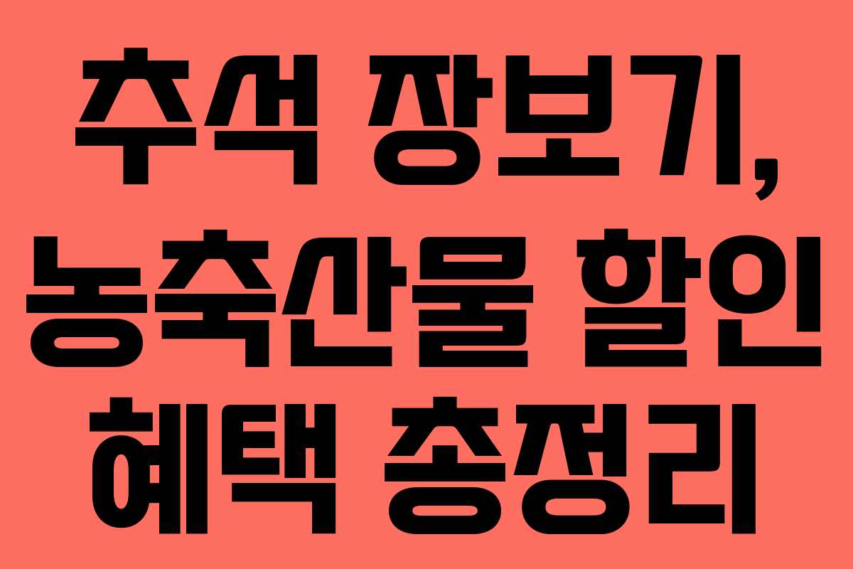추석이 다가오면서 가족과 친지들을 위해 장을 보는 준비에 나서는 사람들이 많습니다. 특히 명절에는 차례상 차리기와 선물 준비로 바쁘기 마련인데요. 이번에는 농림축산식품부의 할인 지원 정보를 통해 저렴하게 장을 볼 수 있는 방법을 소개합니다.