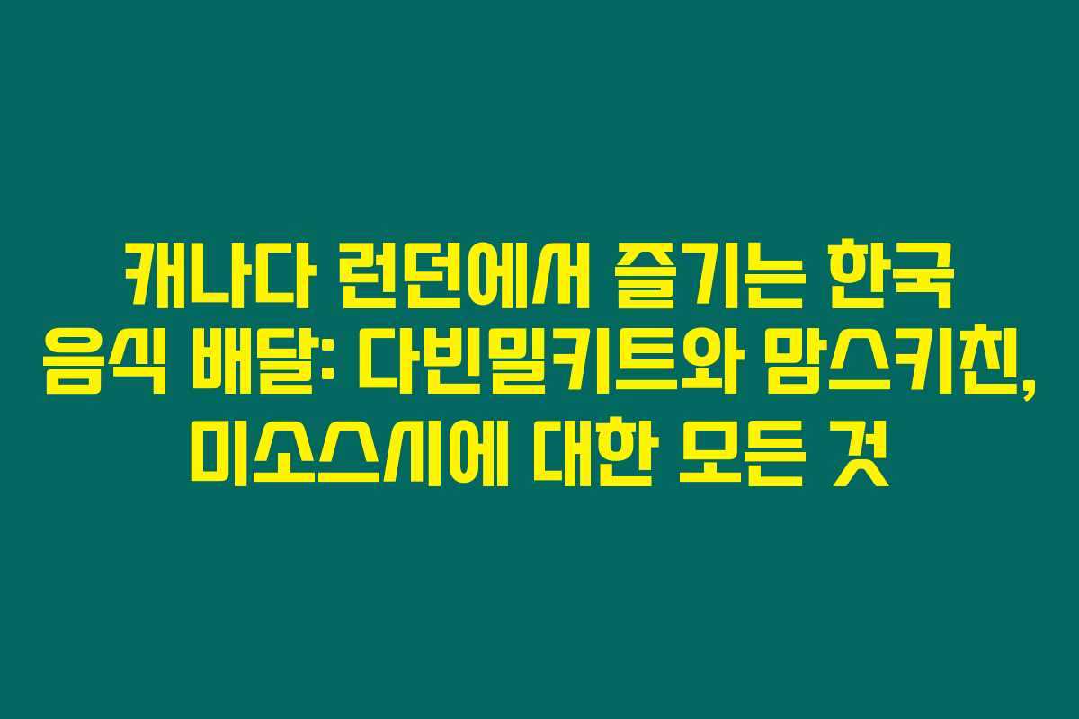 캐나다 런던에서 한국 음식을 배달받는 것은 참으로 즐거운 일입니다. 좋은 음식으로 힐링하며, 서로 소통하고 공유할 수 있는 이 기회를 통해 여러분의 일상에 작은 행복을 더해보세요.