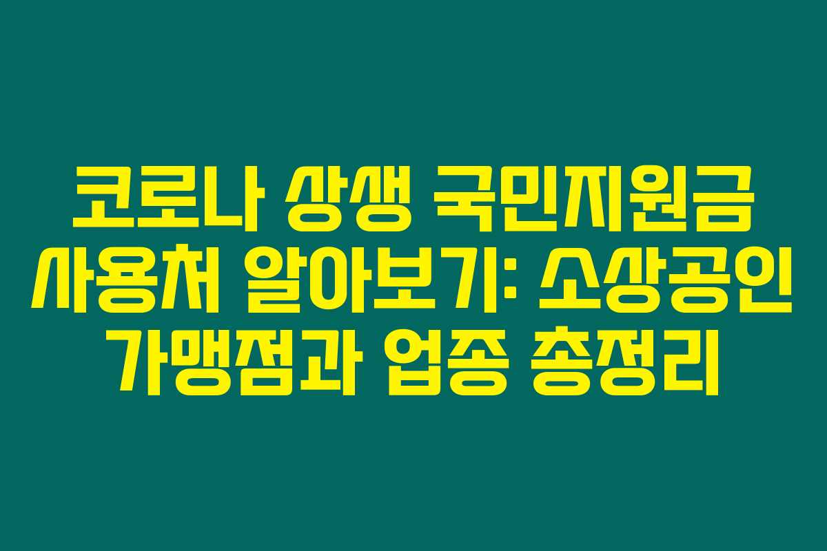코로나 상생 국민지원금을 사용 가능한 곳은 기본적으로 소상공인과 중소기업이 운영하는 다양한 업종입니다. 지원금은 소상공인의 회복을 돕기 위해 마련되었기 때문에, 가까운 소상공인 가맹점에서 쉽게 사용할 수 있어요.