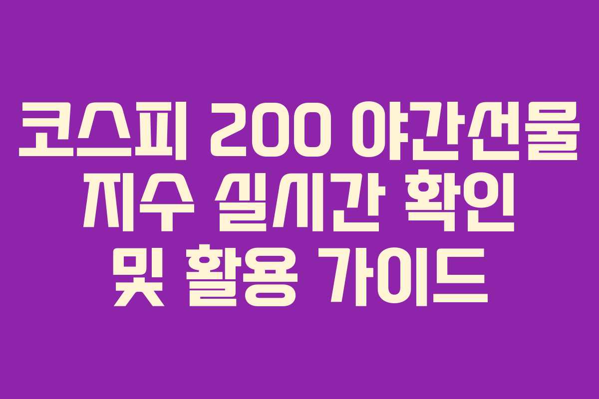 코스피 200 야간선물 지수 실시간 확인 및 활용 가이드