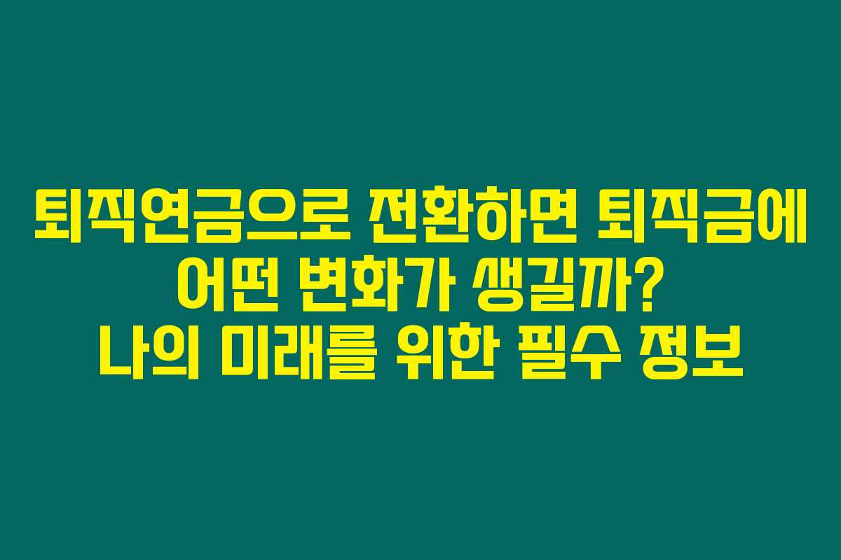 - 퇴직연금 전환 시 고려해야 할 중요 사항