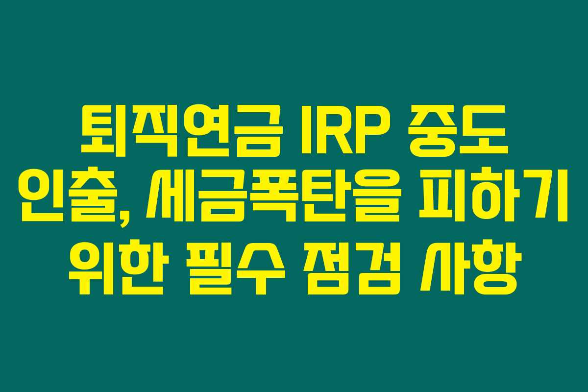 IRP에서 중도 인출 시 세금 문제는 피할 수 없는 부분이에요. 그 내용은 다음과 같습니다.