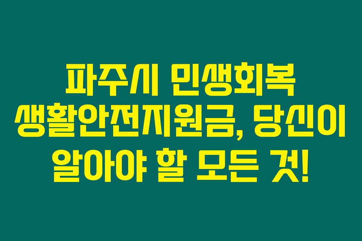 파주에서는 민생회복 생활안전지원금을 시행하고 있어요. 이 지원금은 파주시에 거주하는 주민들을 대상으로 하며, 생활비 부담을 덜어주기 위한 중요한 역할을 해요. 이 지원금은 다음과 같은 정보가 있습니다.