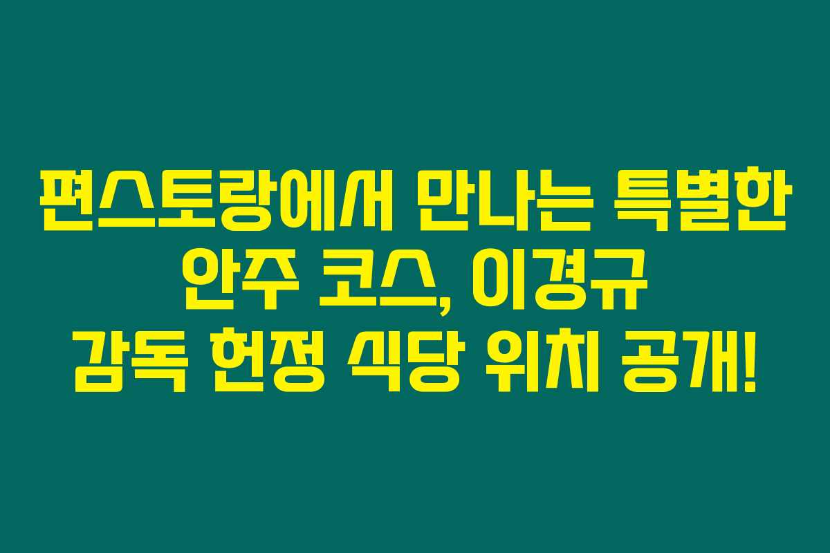 짙은 밤 술 한 잔과 함께 하는 완벽한 안주, 당신은 어디서 찾고 계신가요? 편스토랑에서 소개된 이경규 감독의 헌정을 받은 안주 맛집이 서울에 있다고 해요. 술과 어우러지는 코스 요리로 특별한 경험을 선사할 편스토랑 안주 맛집에 대해 궁금하신가요? 아래를 읽어보시면 이 특별한 장소와 함께 재미있는 술안주 이야기를 확인할 수 있어요.