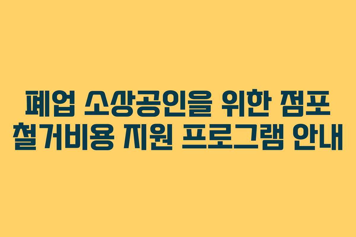 폐업 소상공인을 위한 점포 철거비용 지원 프로그램은 재기할 수 있는 중요한 기회를 제공합니다. 2026년 기준으로 이 프로그램을 통해 많은 소상공인이 경제적 부담을 덜고 새로운 시작을 할 수 있는 기반을 마련할 수 있기를 바랍니다. 적극적인 참여를 통해 더 많은 소상공인이 혜택을 받을 수 있도록 협조해 주시기 바랍니다.