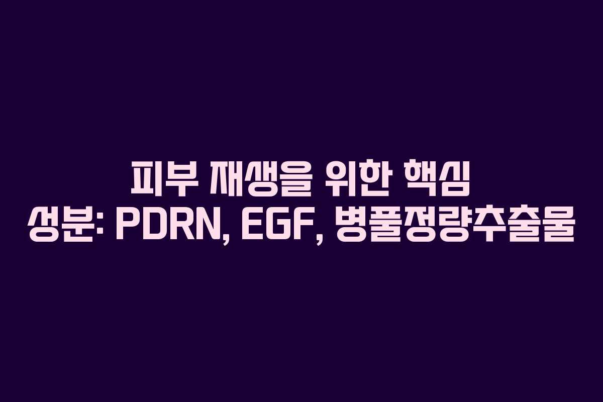 성분은 피부 상태와 고민에 따라 적절히 활용해야 가장 효과적입니다. 예를 들어, 시술 후 회복이 필요하다면 PDRN을, 잔주름 개선을 원한다면 EGF를, 민감한 피부를 진정시키고 싶다면 병풀정량추출물을 선택하는 것이 좋습니다.
