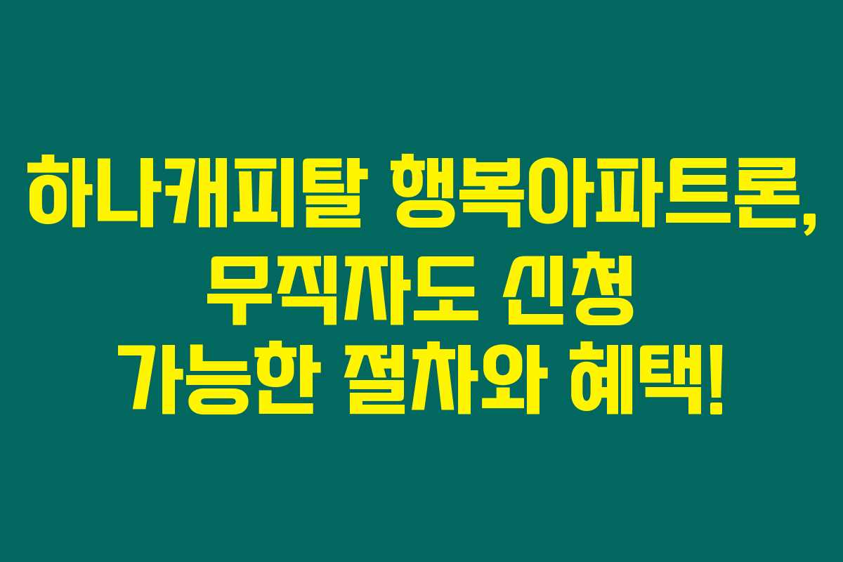 제가 직접 체크해본 바로는, 하나캐피탈 행복아파트론은 주택 구입을 꿈꾸는 많은 이들에게 큰 기회를 제공하는 대출 상품이에요. 특히 무직자도 신청할 수 있는 조건 때문에 더 많은 사람들에게 관심을 받고 있습니다. 아래를 읽어보시면 이 상품의 자세한 정보와 혜택을 확인할 수 있을 거예요.