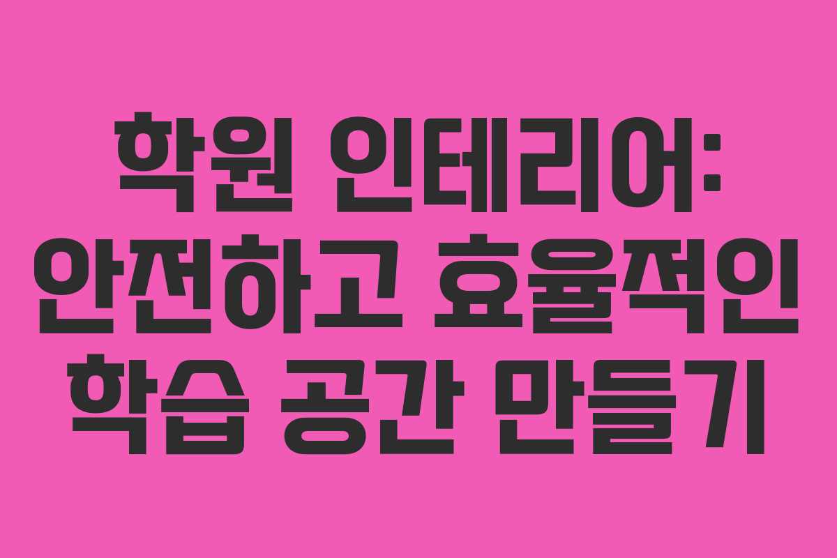 학원 인테리어는 학생들의 학습 효율과 집중력을 향상시키기 위해 매우 중요한 요소입니다. 공간 활용도와 안전성을 고려하여 조명, 색상, 소음 차단, 가구 배치 등을 최적화하는 것이 필요합니다. 이번 글에서는 학원 인테리어의 핵심 요소와 비용, 업체 선택 방법에 대해 알아보겠습니다.