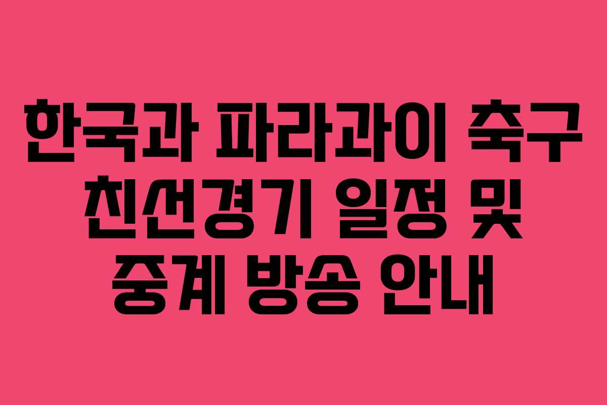 대한민국 축구 국가대표팀이 남미의 파라과이와 친선경기를 개최합니다. 이번 경기는 지난 브라질전의 아쉬움을 털어내고 팬들에게 희망을 주는 기회가 될 것입니다. 아래에서 파라과이와의 평가전 일정과 중계 방송 정보를 확인해보세요.