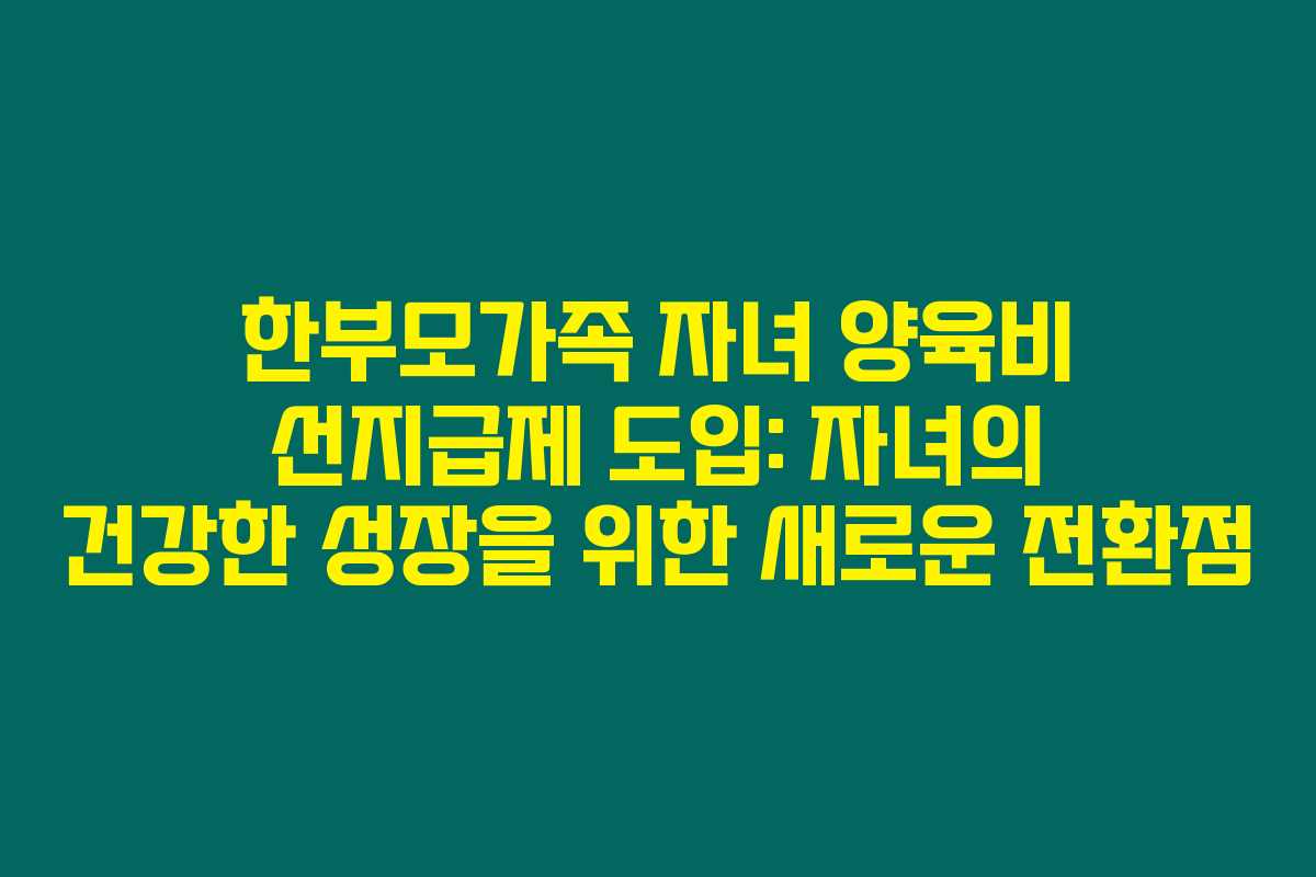 제가 직접 알아본 바로는 한부모가족의 자녀가 건강하게 성장하기 위해 정부가 ‘한부모가족 자녀 양육비 선지급제’를 도입하고 있다는 소식이 많이 들리고 있습니다. 이 제도는 특히 양육비 미지급 문제로 어려움을 겪는 가정에 큰 도움이 될 수 있을 것 같습니다. 아래를 읽어보시면 이 제도의 다양한 측면과 그것이 가져올 변화에 대해 자세히 알아볼 수 있을 거예요.