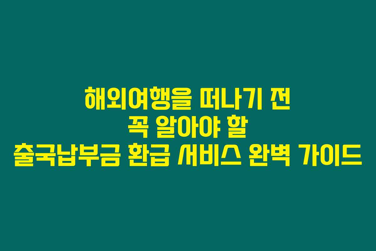 출국납부금 환급 서비스는 예상치 못한 상황에서 납부한 세금을 돌려받을 수 있는 중요한 제도입니다. 해외여행을 계획하면서 이 서비스를 미리 알아두면 좋습니다. 똑똑하게 준비하고, 만약의 사태에 대비하면서 안전하고 즐거운 여행을 만들어가세요!
