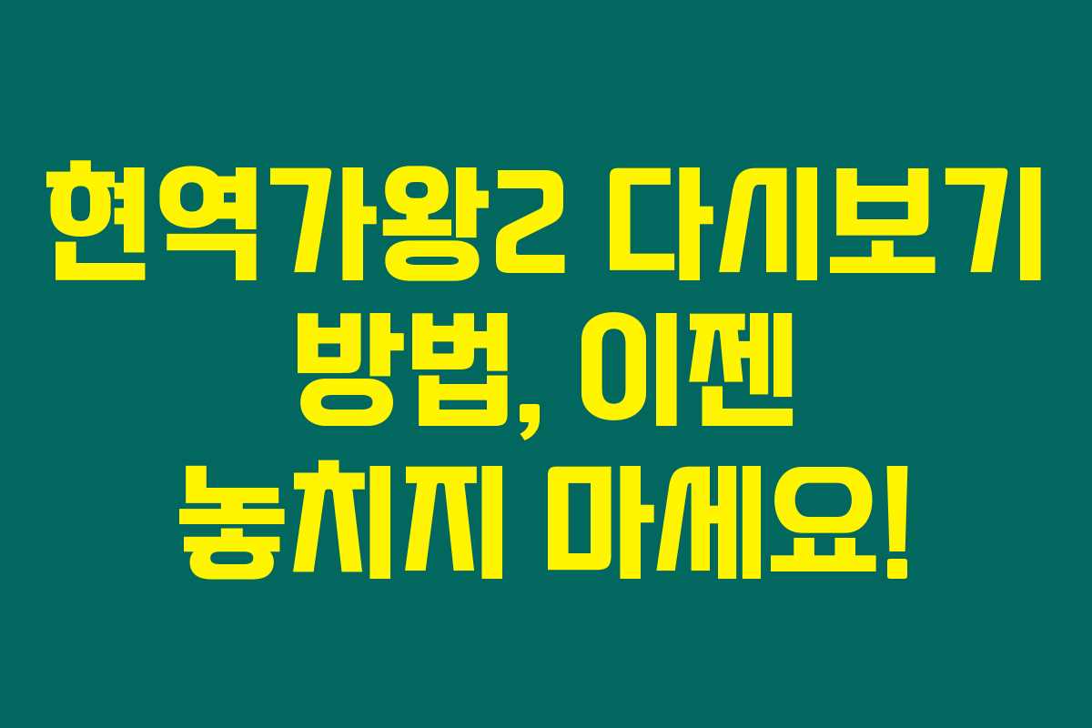 현역가왕2를 놓친 여러분에게 알려드립니다. 현역가왕2가 방영된 후 어떤 경로로 다시 시청할 수 있는지 궁금하신가요? 본 방송을 놓쳤다면 이 방법들을 확인해 보세요. 트로트의 열정을 다시 느낄 수 있는 세 가지 방법을 정리했습니다.