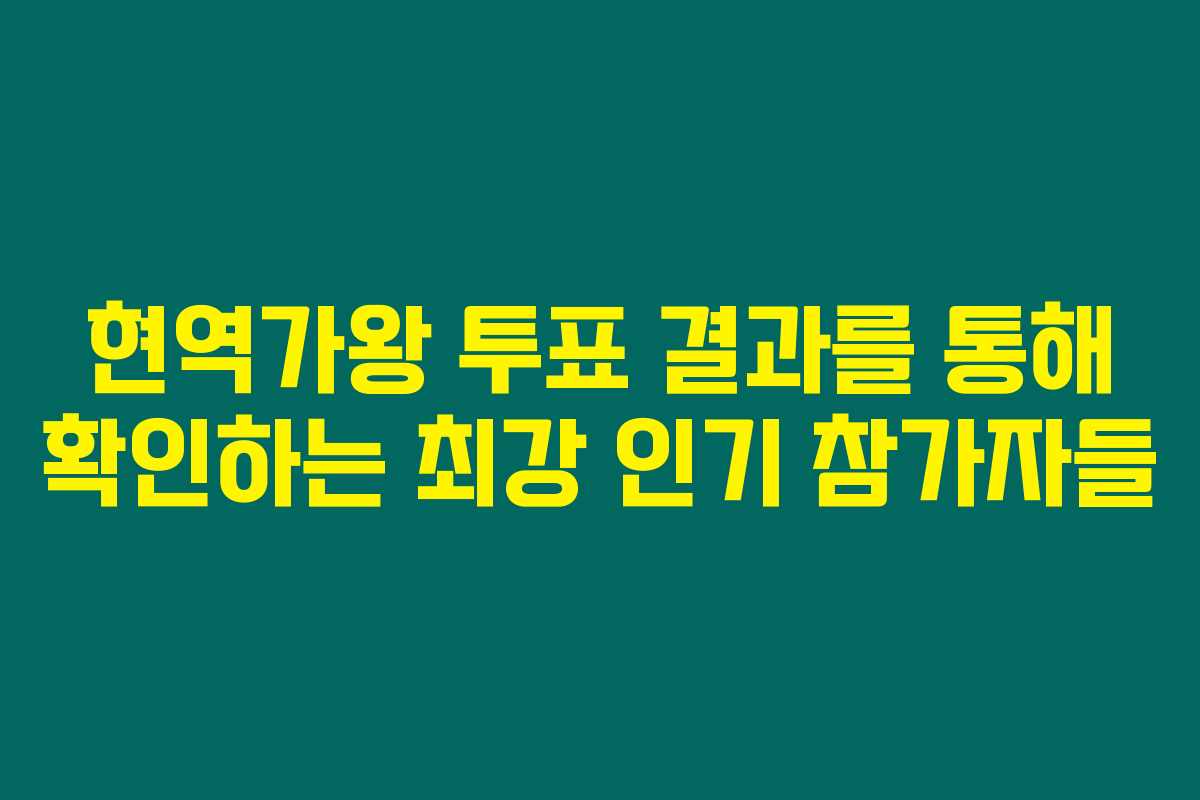 현역가왕 투표 결과가 궁금하신가요? 최근 방송된 5화에서 공개된 3주차 투표 결과를 통해, 어떤 참가자들이 많은 사랑을 받고 있는지 확인해보세요. 투표하게 되는 기준이나 방법, 그리고 이 참가자들이 어떻게 팬들에게 응원을 받고 있는지, 자세히 알아보겠습니다.