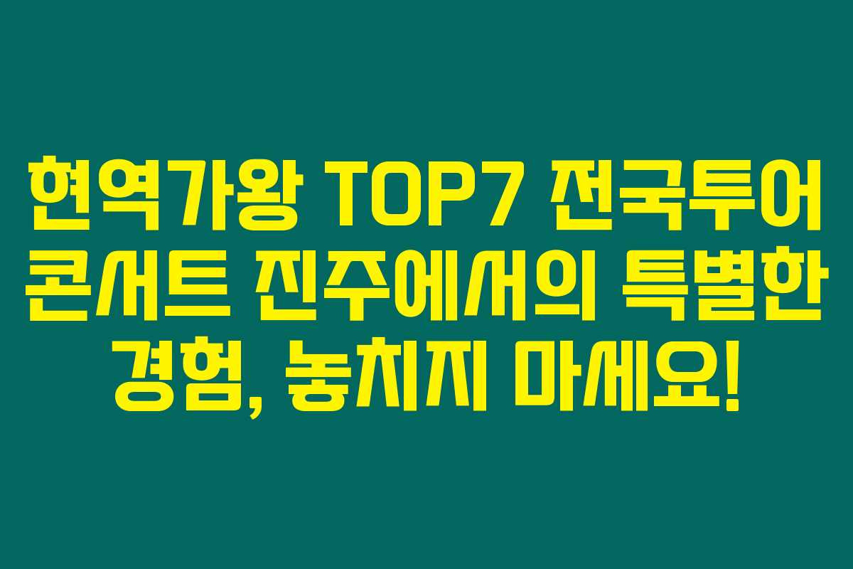현역가왕 진주 콘서트는 단순한 공연이 아니에요. TOP7의 다양한 솔로 무대와 유닛 무대가 예상되며, 정말 풍성한 라이브가 기다리고 있어요. 모두들 기대 많이 하시죠?