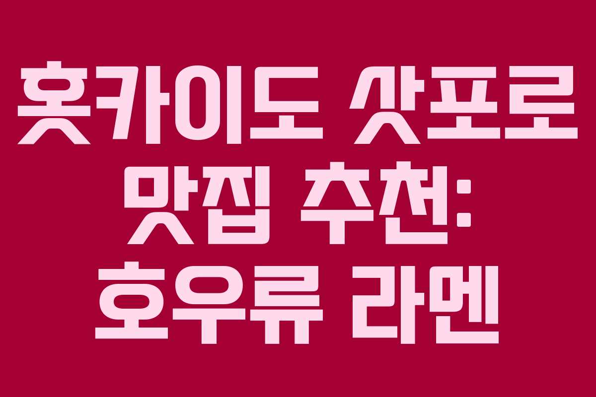 홋카이도를 여행하면서 다양한 음식을 경험할 수 있었던 기회에 대해 이야기해보려 합니다. 이번 여행에서 특히 인상 깊었던 곳은 삿포로의 호우류 라멘입니다. 이곳은 모든 음식이 만족스러웠던 여행의 하이라이트 중 하나였습니다.