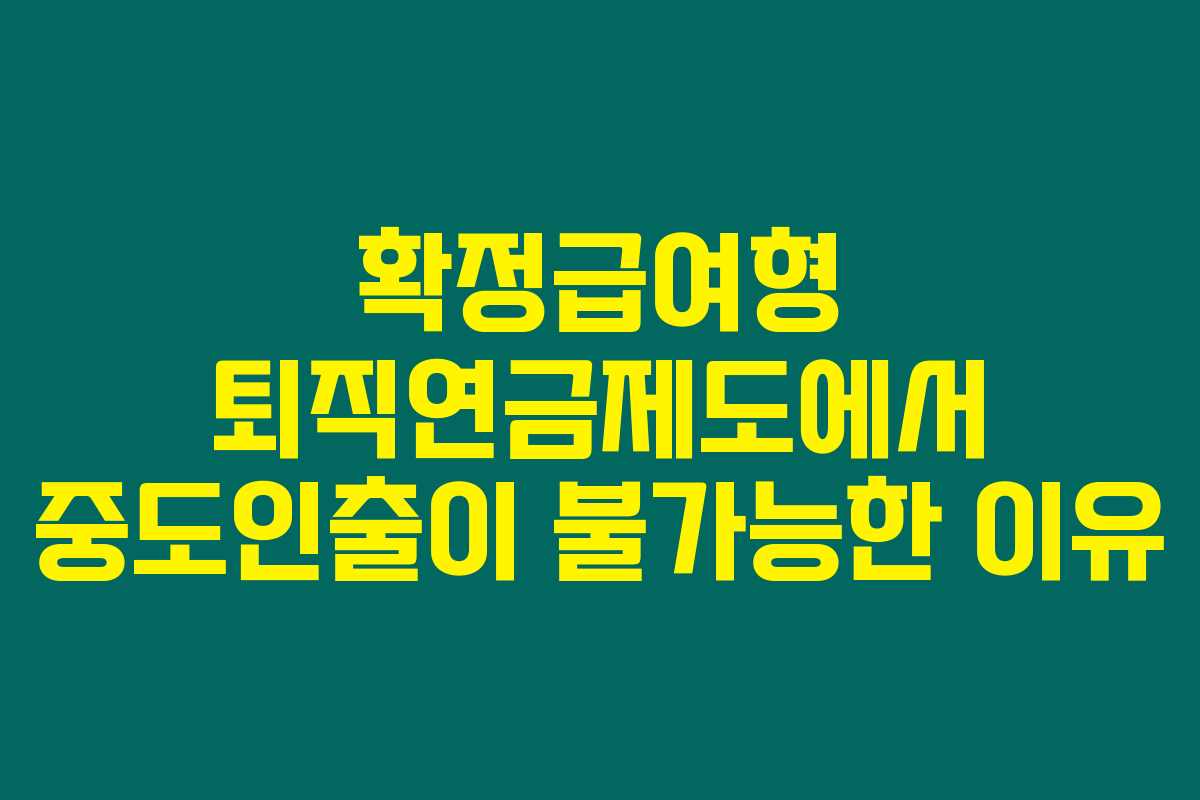 이런 이유로 퇴직연금제도에서는 중도인출이 원칙적으로 허용되지 않아요.