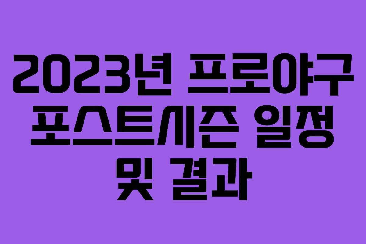 2023년 프로야구 포스트시즌이 본격적으로 진행되면서 팬들의 관심이 집중되고 있습니다. 이번 포스트시즌의 주요 일정과 결과를 정리해 보겠습니다.