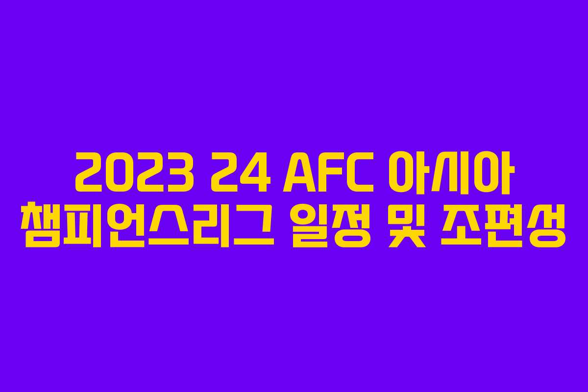 AFC 아시아 챔피언스리그 조별리그는 2023년 9월 18일부터 12월 13일까지 진행됩니다. 이후 16강전은 2024년 2월 12일부터 21일까지, 8강전은 3월 4일부터 13일까지, 준결승전은 4월 16일부터 24일까지, 결승전은 5월 11일과 18일에 열립니다.