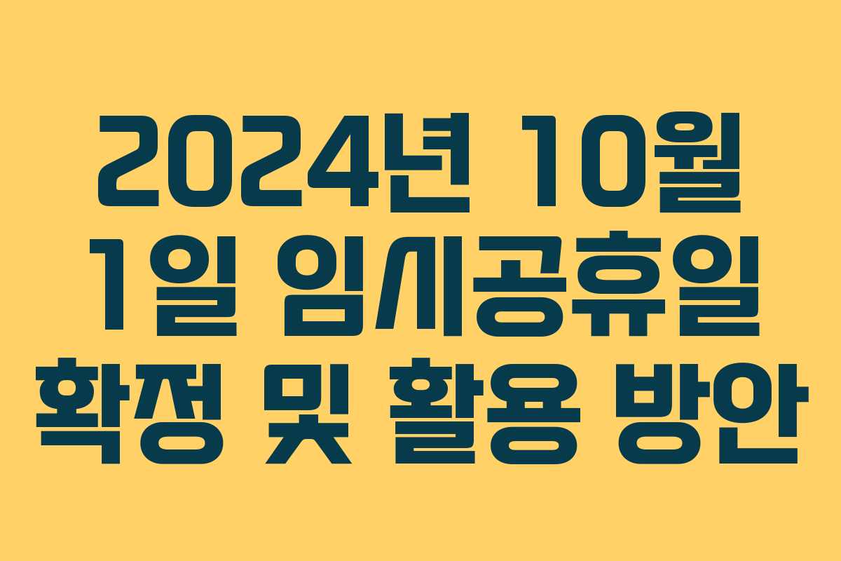 2024년 10월 1일이 임시공휴일로 확정됨에 따라 많은 이들이 휴가나 여행 계획을 세우고 있습니다. 이번 임시공휴일의 배경과 경제적 효과, 그리고 활용 방법에 대해 알아보겠습니다.