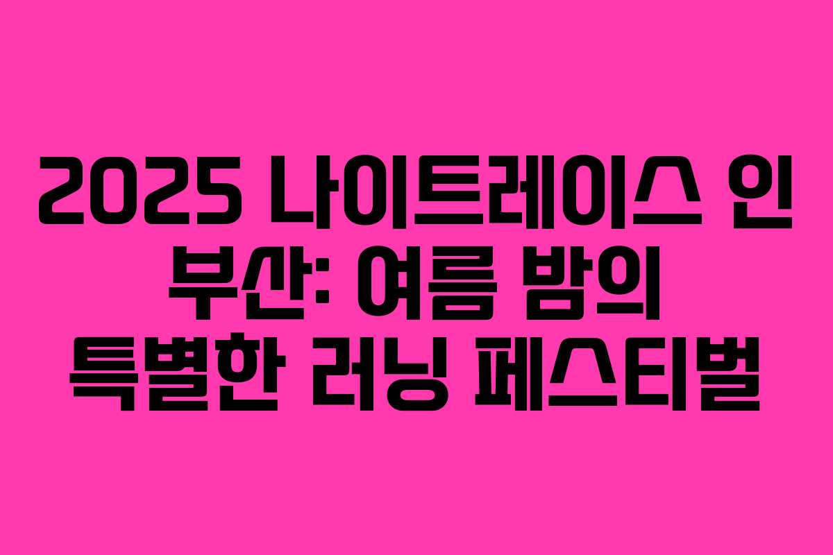 2025년 여름, 부산의 밤바다에서 펼쳐질 ‘2025 나이트레이스 인 부산’에 대해 알아보겠습니다. 이 이벤트는 독특한 조명과 함께하는 야간 러닝 페스티벌로, 참가자들이 환상적인 경험을 누릴 수 있도록 준비되었습니다.