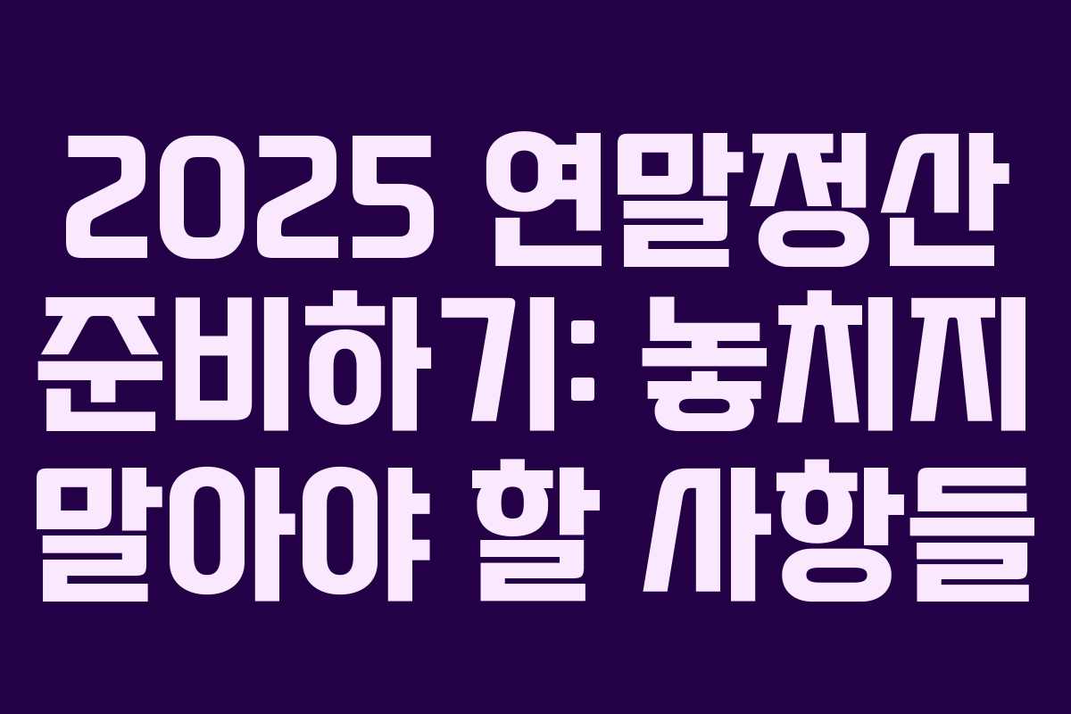 2025 연말정산 준비하기: 놓치지 말아야 할 사항들