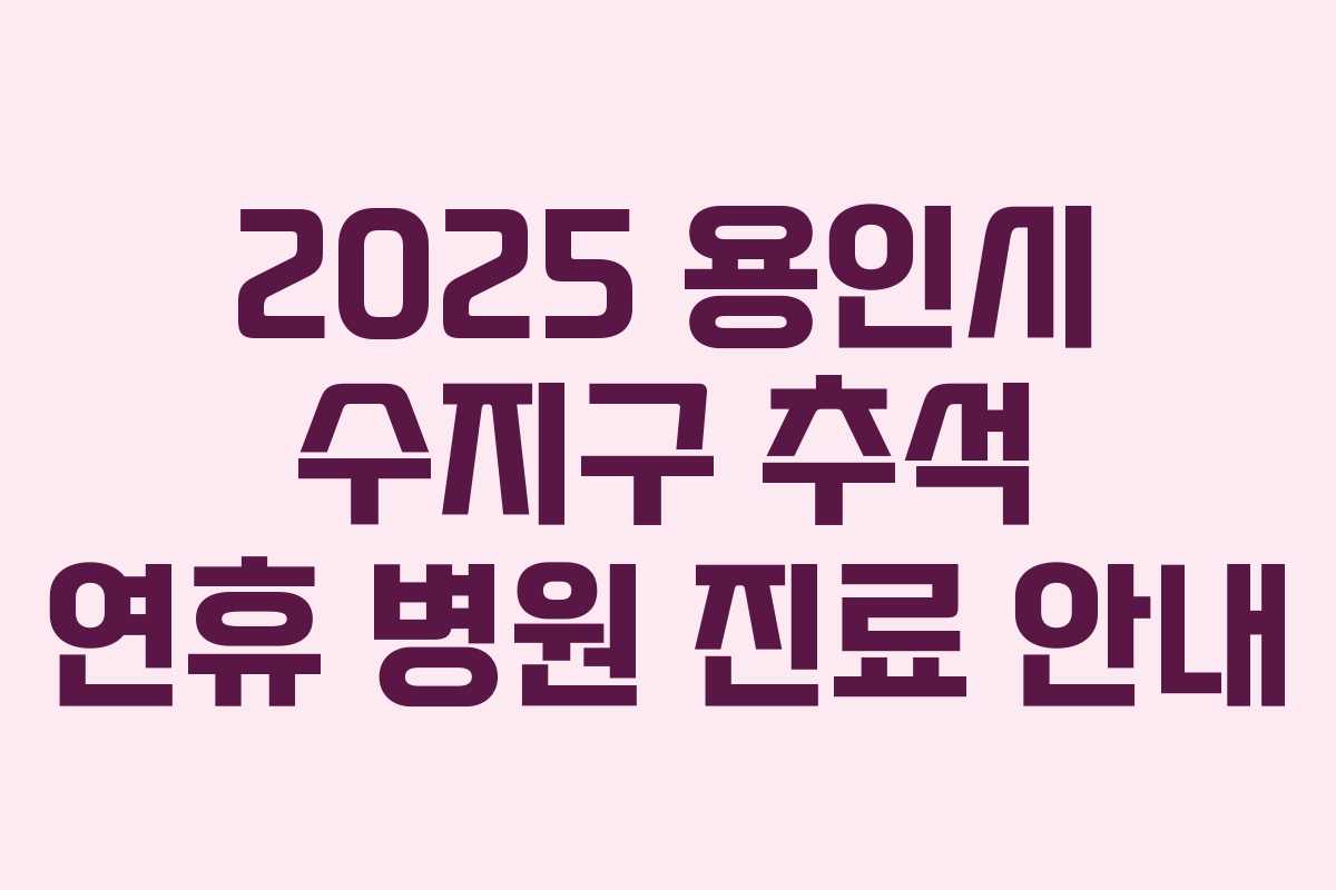 2025년 추석 연휴 동안 용인시 수지구의 병원 운영 현황에 대한 정보는 가족과 건강한 연휴를 보내기 위해 필수적입니다. 아래에서는 연휴 기간 동안 운영되는 병원 목록과 진료 과목, 운영 시간을 안내합니다.